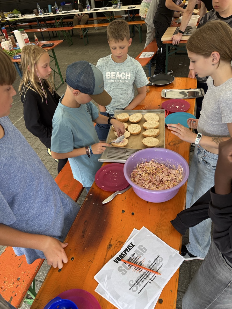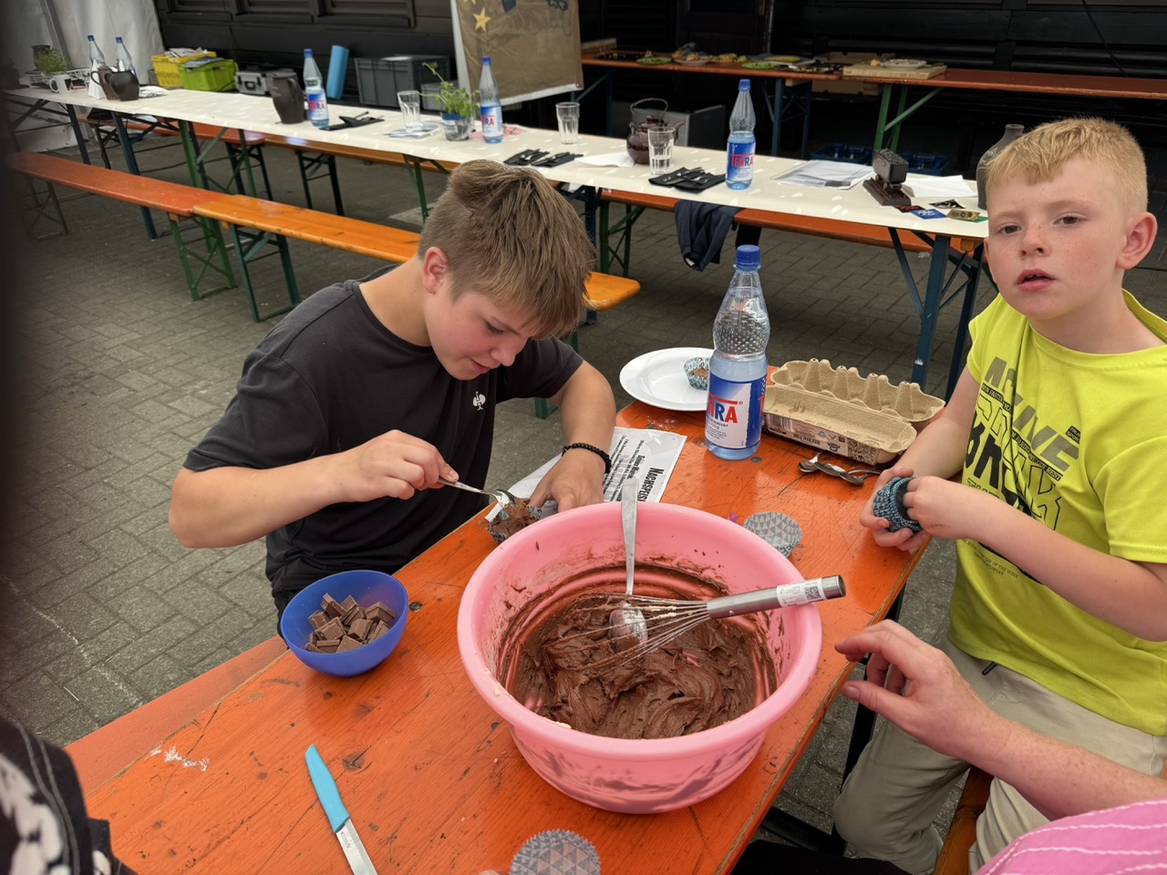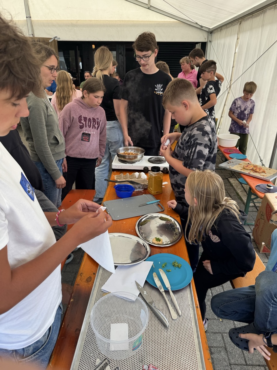 Nachmittags stand dann ein weiteres Highlight auf dem Programm: „Schlag die Smutjes“ Hier waren alle Kinder herausgefordert, um in drei Gängen (Vorspeise, Hauptspeise und Nachtisch), unsere fantastischen Köche zu schlagen. Zubereitet wurden Pizzabrötchen, Bratkartoffeln mit Spiegelei und Schokomuffins mit flüssigem Kern. Bewertet wurde dann alles von unseren kompetenten Fachjury.