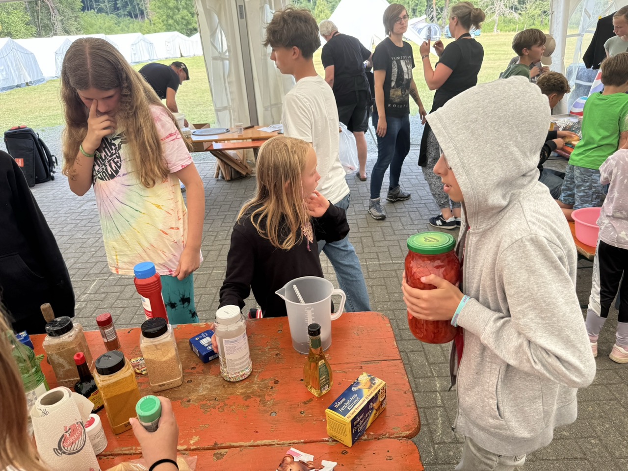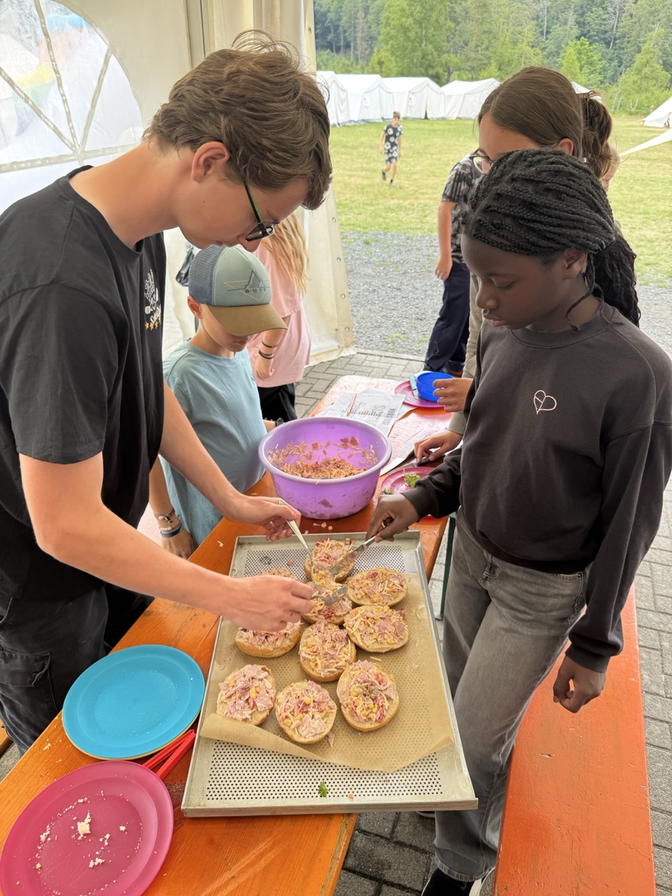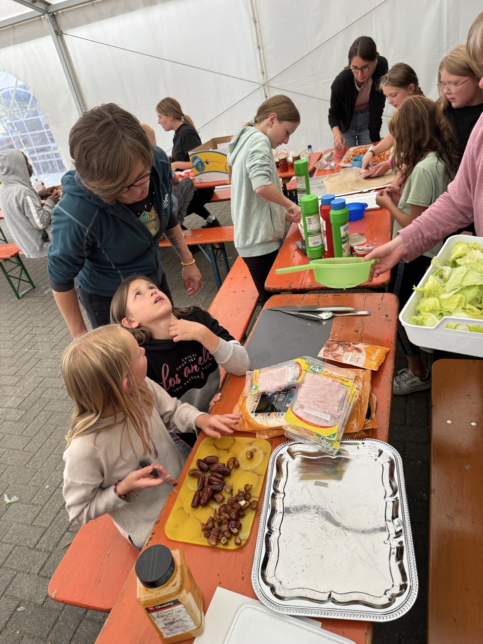 Nachmittags stand dann ein weiteres Highlight auf dem Programm: „Schlag die Smutjes“ Hier waren alle Kinder herausgefordert, um in drei Gängen (Vorspeise, Hauptspeise und Nachtisch), unsere fantastischen Köche zu schlagen. Zubereitet wurden Pizzabrötchen, Bratkartoffeln mit Spiegelei und Schokomuffins mit flüssigem Kern. Bewertet wurde dann alles von unseren kompetenten Fachjury.