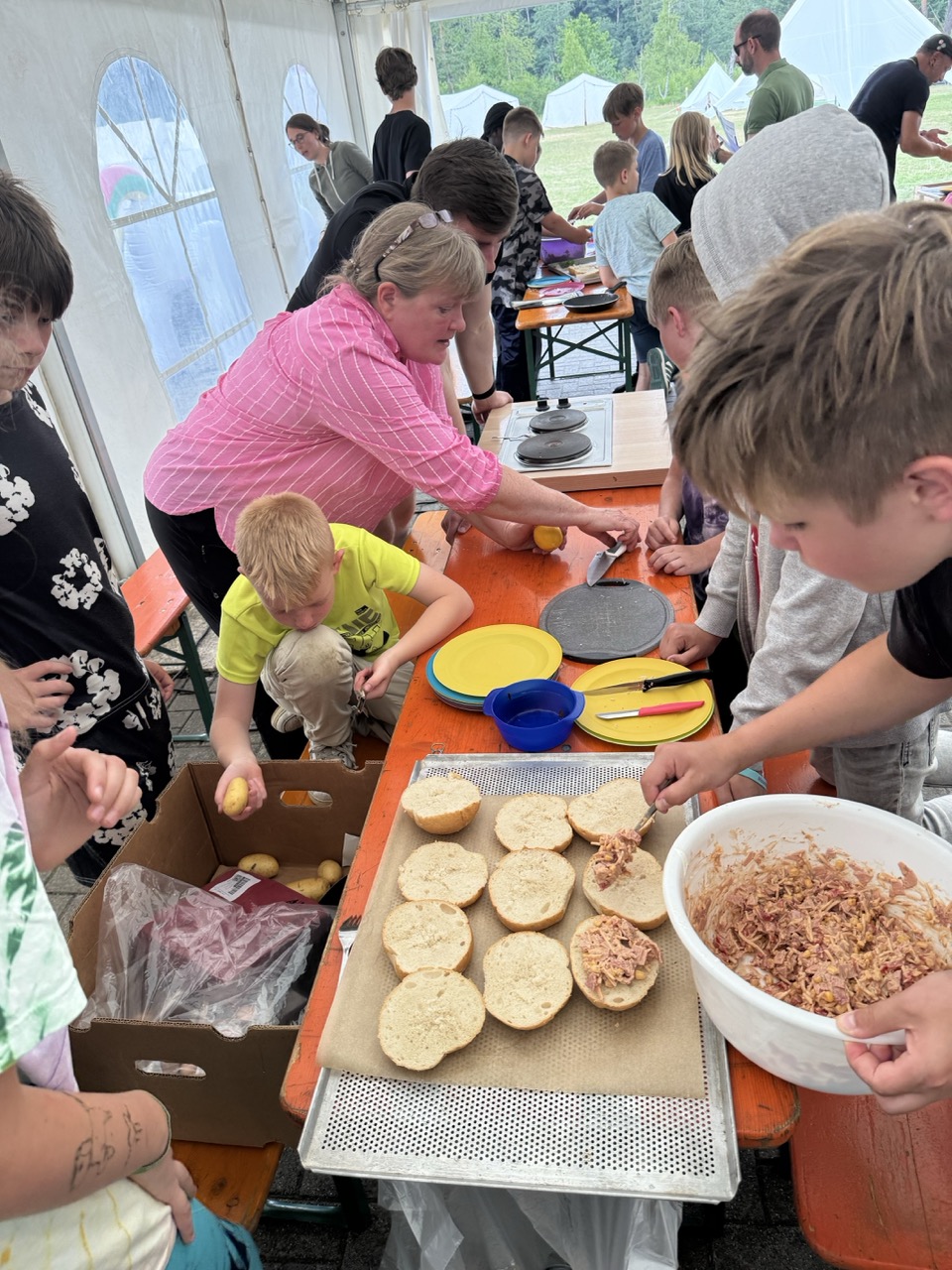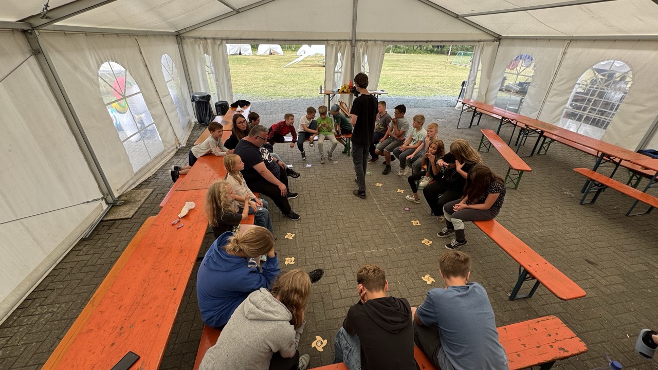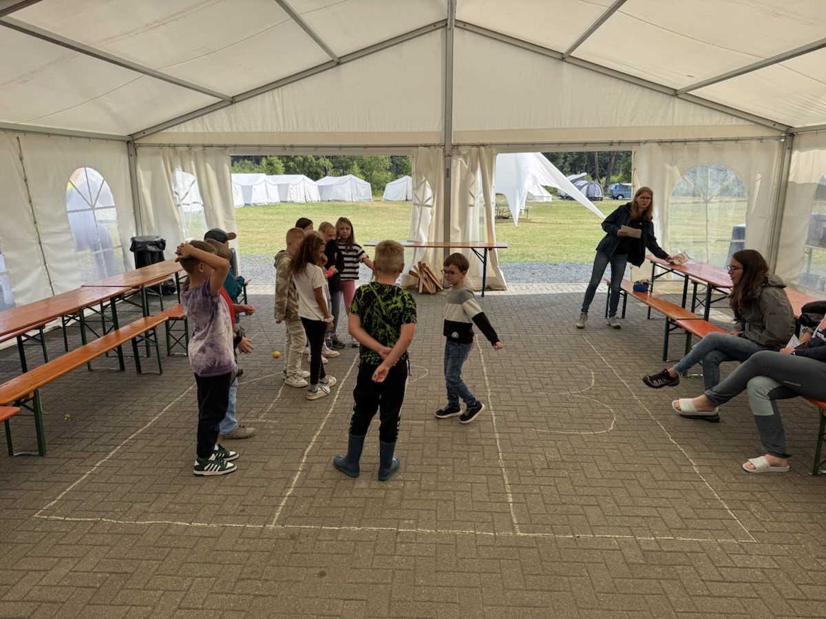 Hungrig wieder zurück auf dem Platz gab es das Abendessen und noch einmal ein paar Gruppenspiele mit Tanzabschluss.
