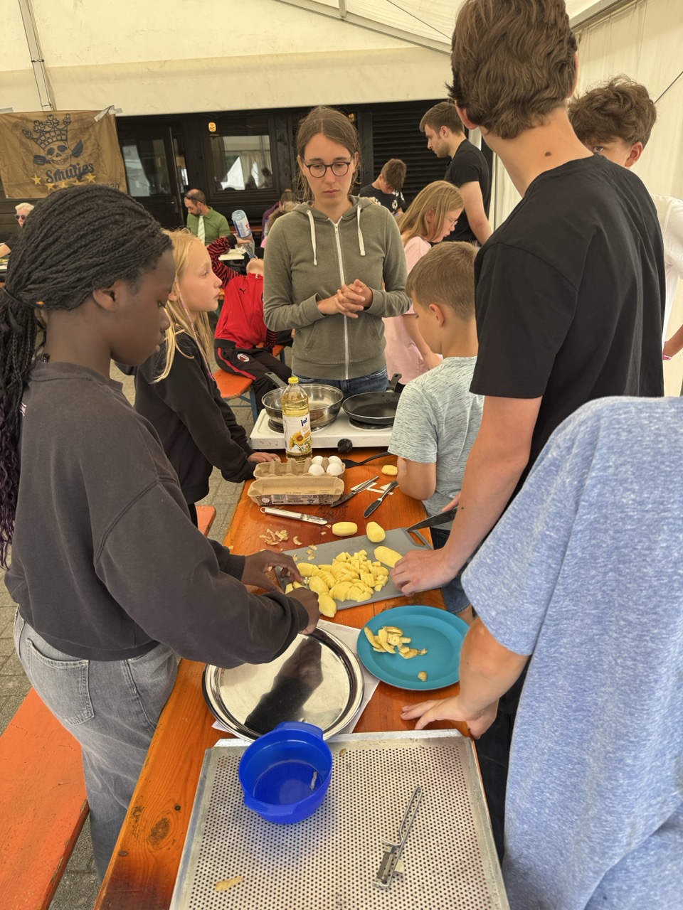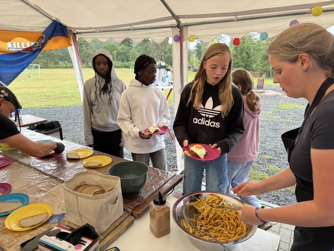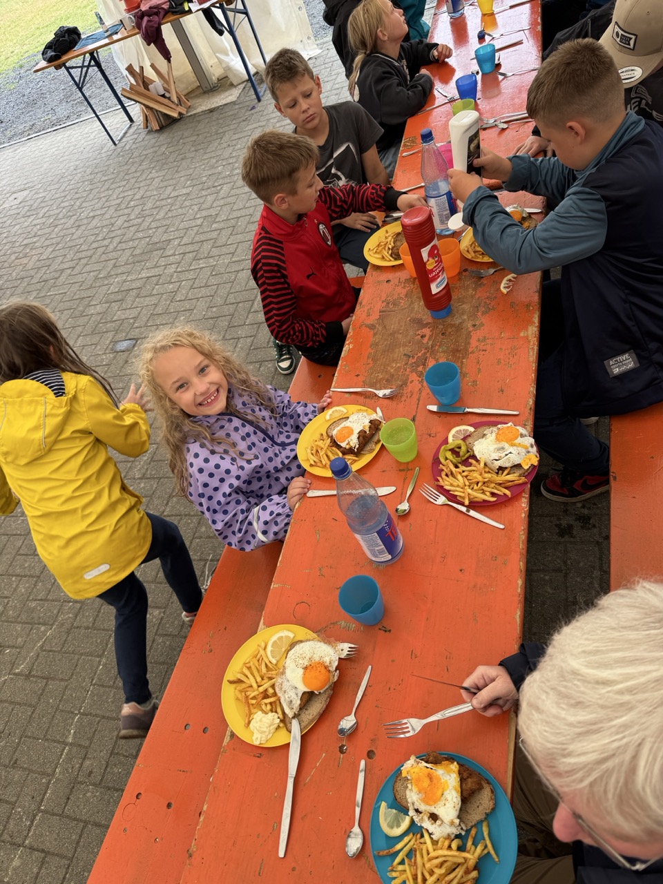 Zum Mittagessen hat sich das Küchenteam selbst übertroffen. Passend zu unserem Thema gab es Siegerländer Krüstchen mit Pommes für alle.