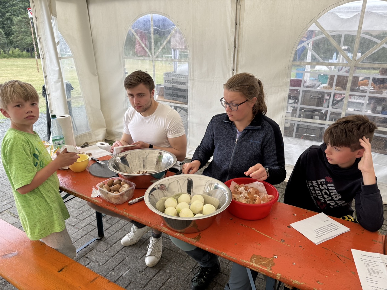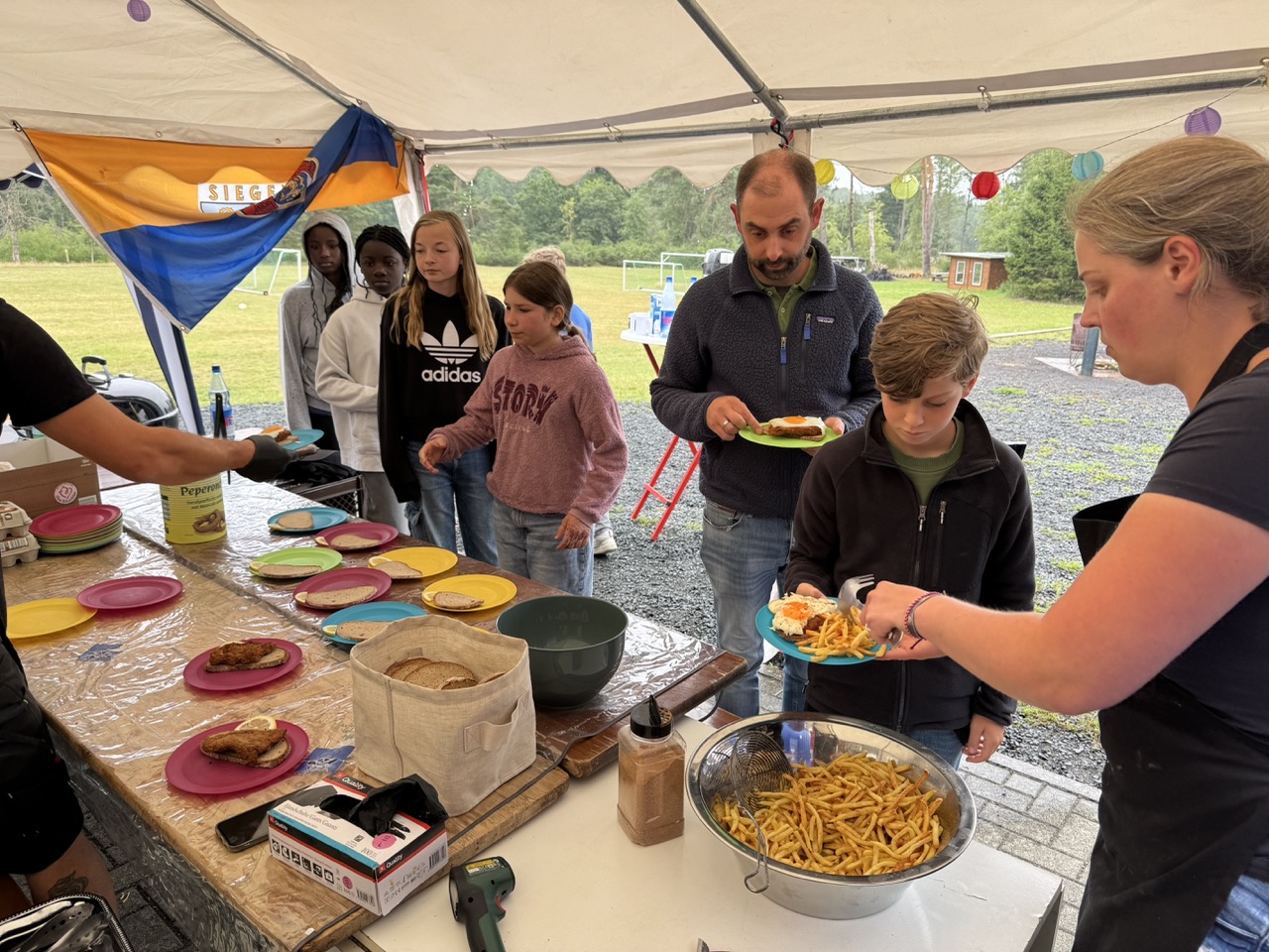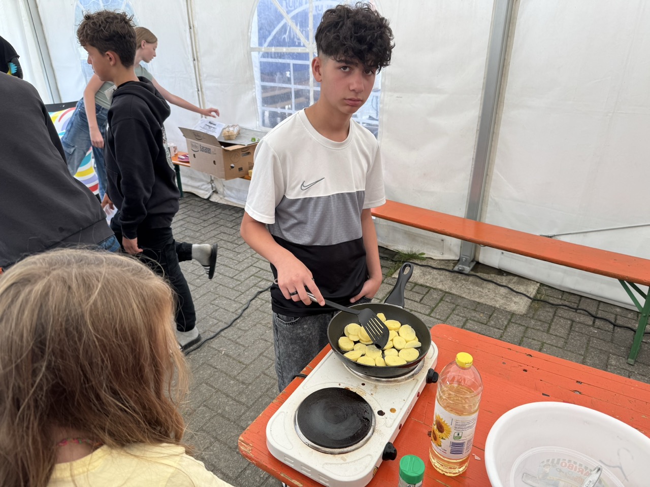 Zum Mittagessen hat sich das Küchenteam selbst übertroffen. Passend zu unserem Thema gab es Siegerländer Krüstchen mit Pommes für alle.