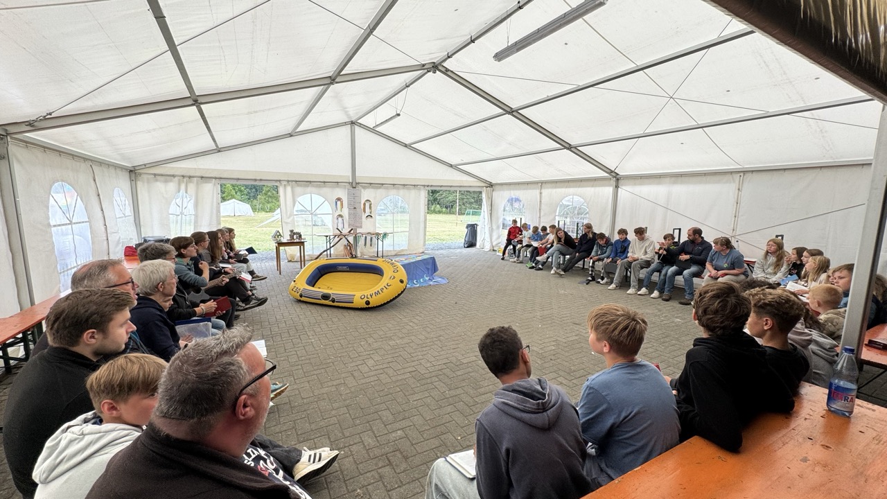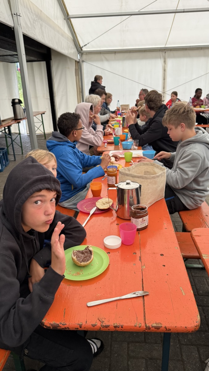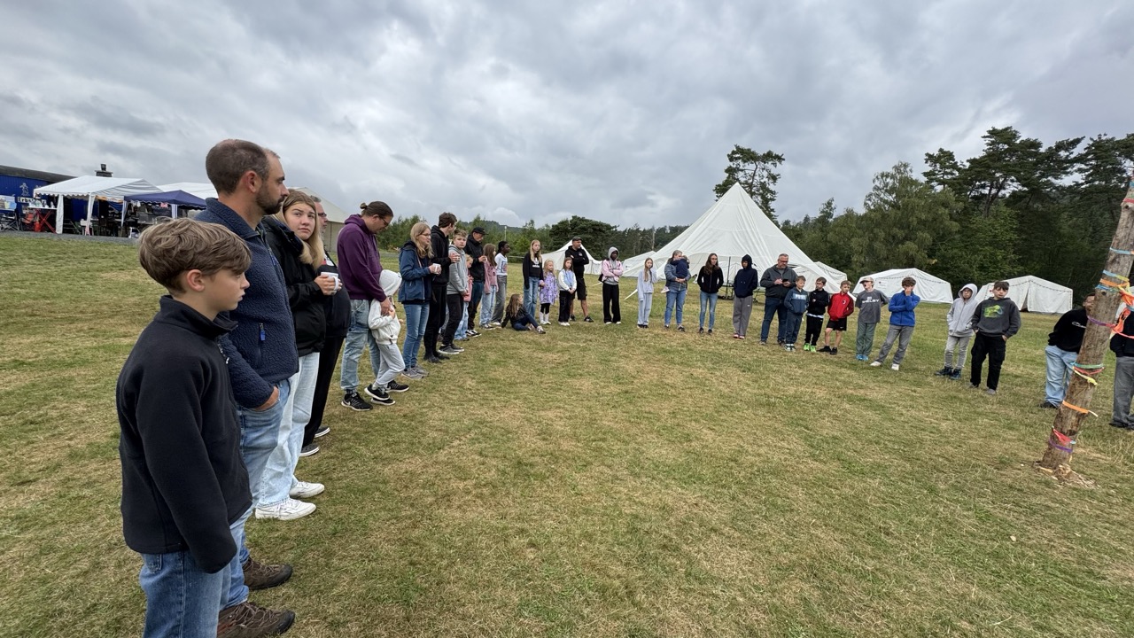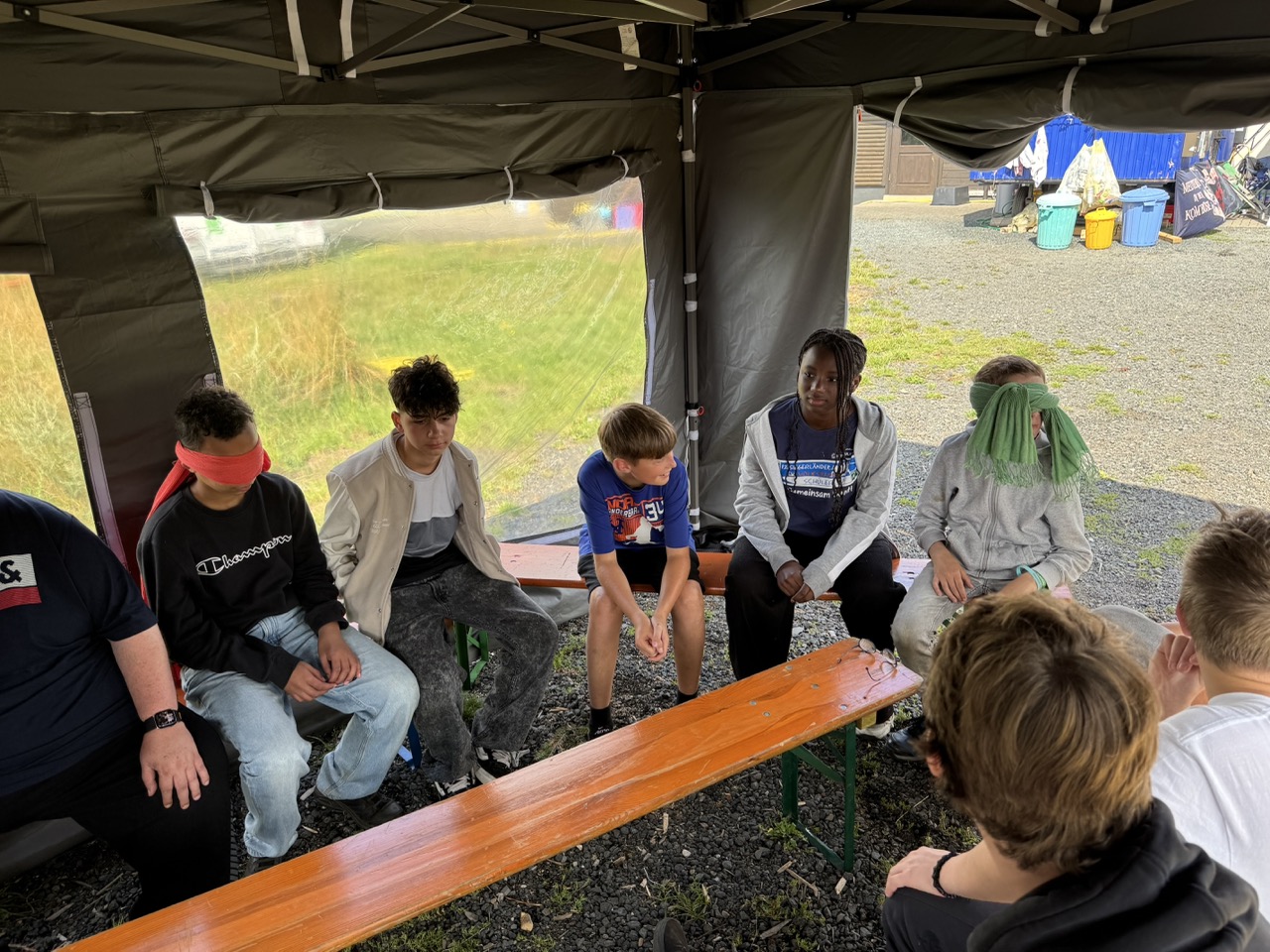 Geweckt wurden wir morgens noch mit Regen und so ging es zur Morgenwache diesmal nicht an den Fahnenmast, sondern direkt ins Essenzelt, wo wir vor dem leckeren Frühstück noch eine Morgenandacht gehört haben.