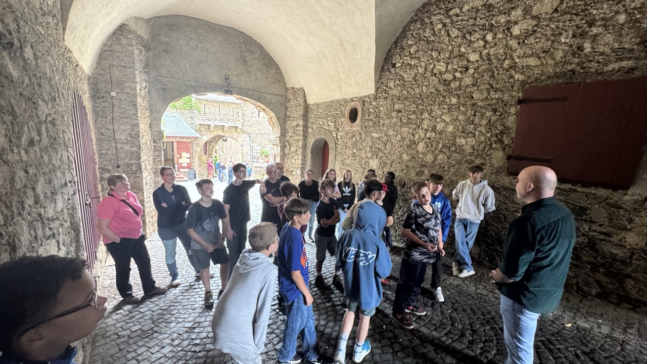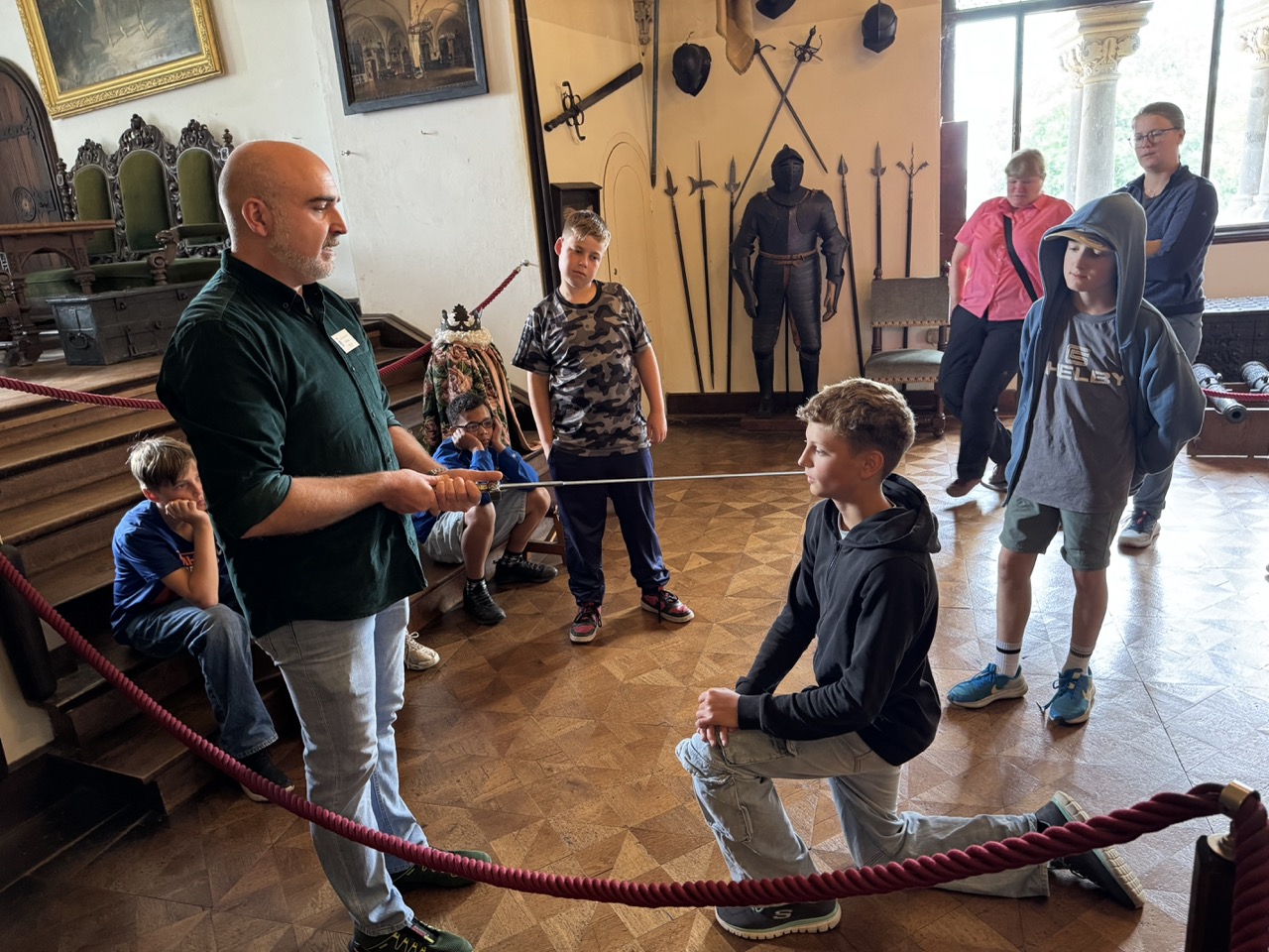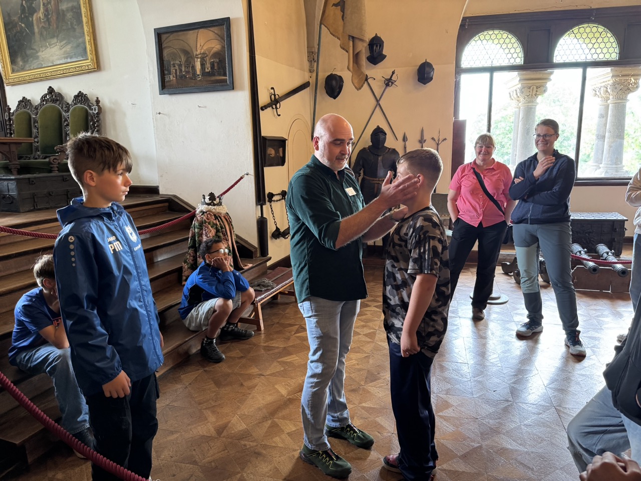 In zwei altersgerechten Gruppen ging es zuerst rund um das Schloss.und anschließend auch noch in einige Räume. Highlight waren dabei die Turmbesteigung und der Rittersaal. Dort lernten wir viel über alte Rüstungen und wie Ritter in verschiedenen Jahrhunderten zum Ritter geschlagen wurden.