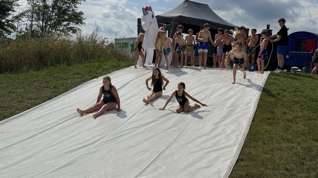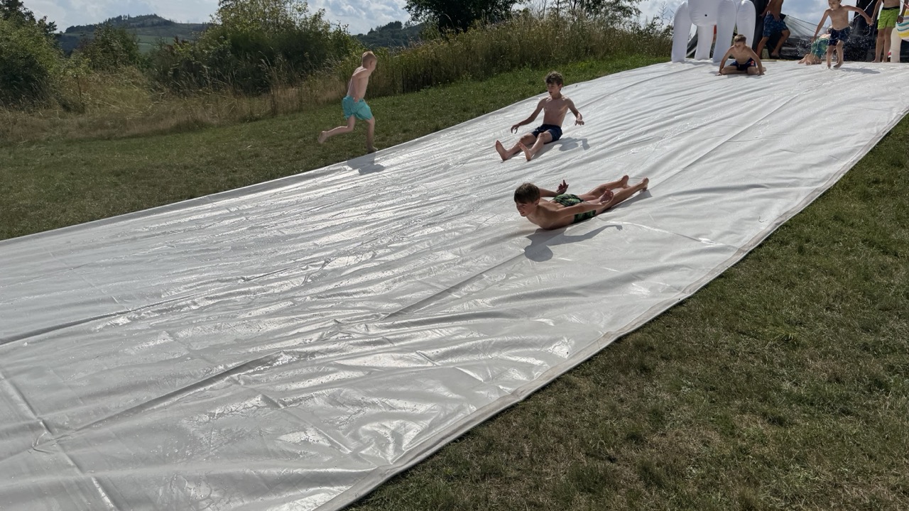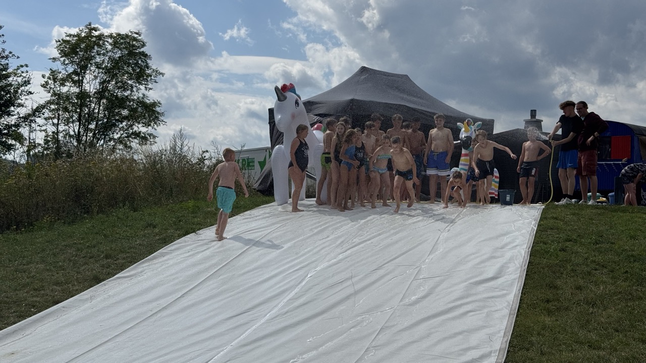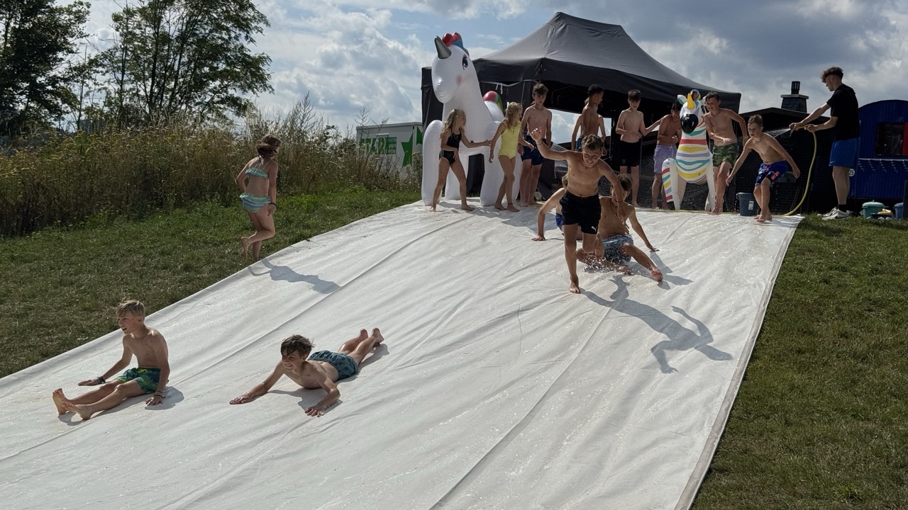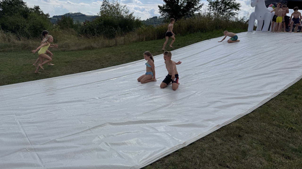Zurück im Lager gab es erst eine etwas verspätete Mittagsruhe und anschließend wurde bei tollem Sonneschein die Wasserrutsche eröffnet.