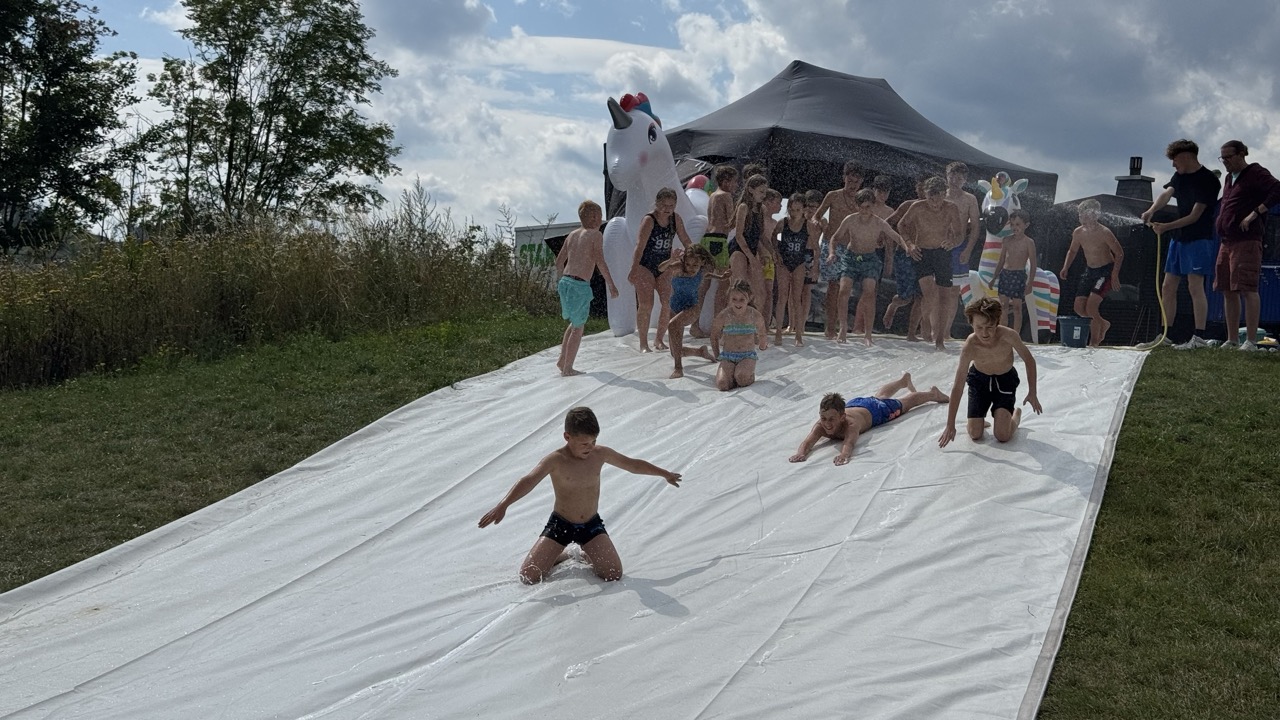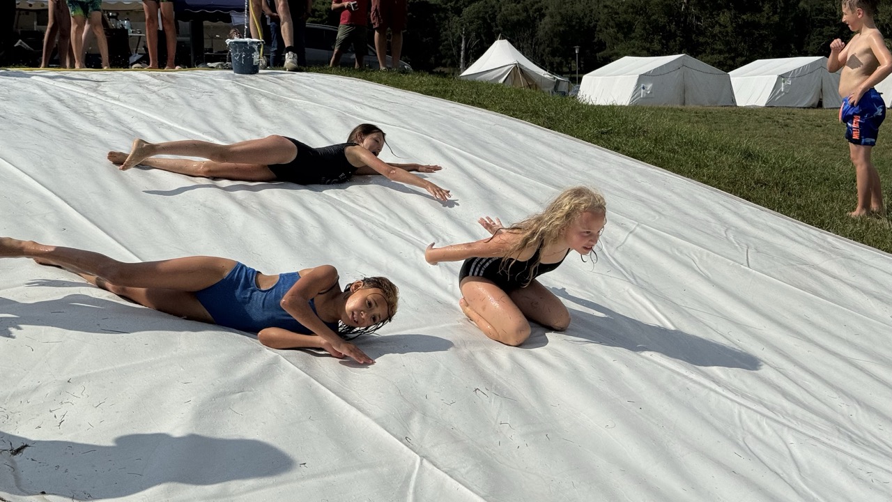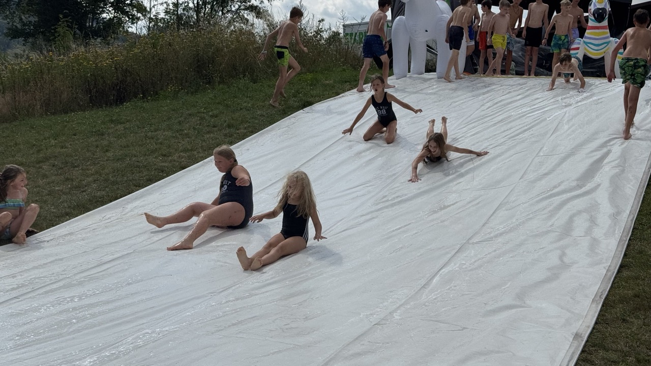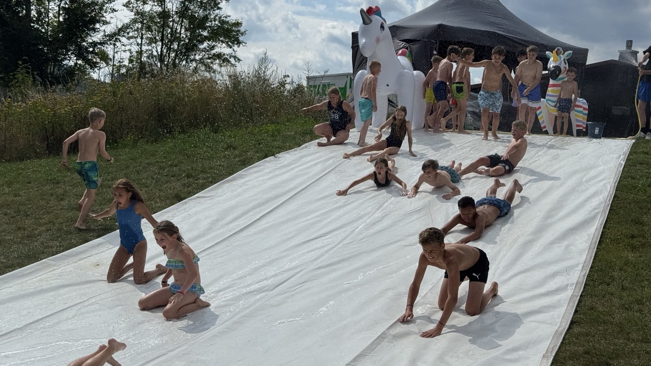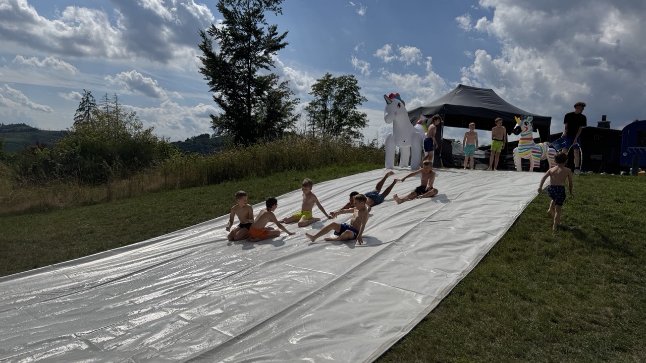 Zurück im Lager gab es erst eine etwas verspätete Mittagsruhe und anschließend wurde bei tollem Sonneschein die Wasserrutsche eröffnet.