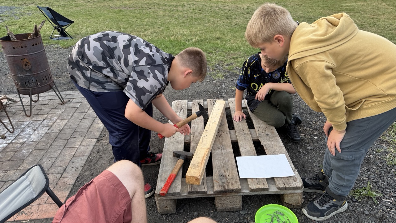 Bis zum Abschluss am Lagerfeuer konnten sich die Kinder dann noch alleine, oder bei Zombieball und Winkingerschach, beschäftigen .