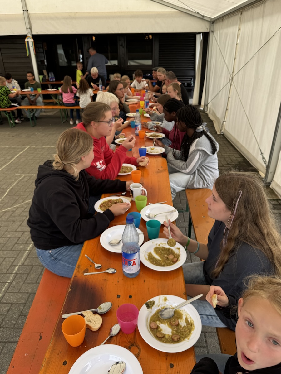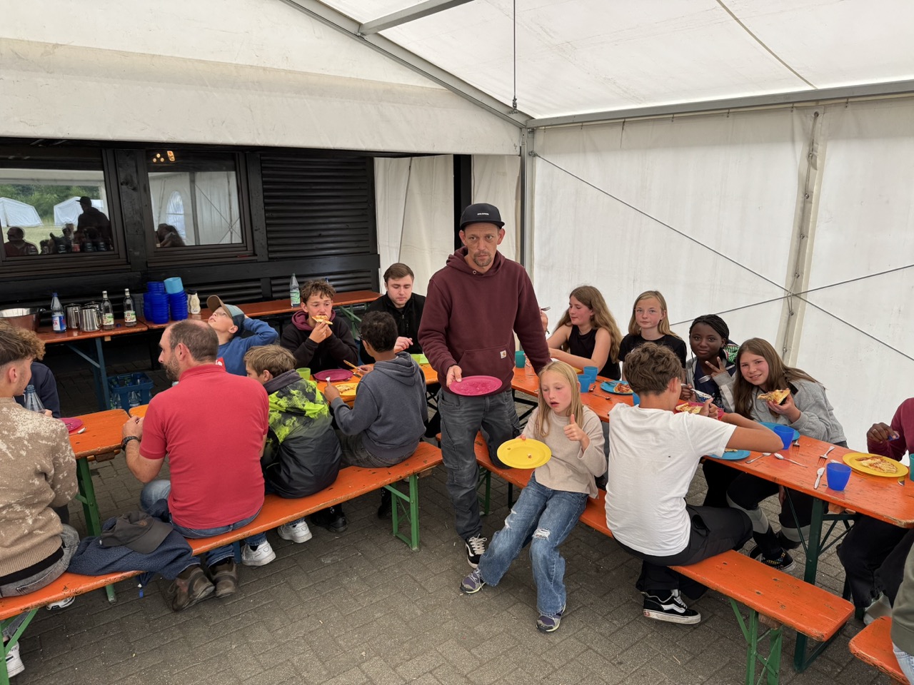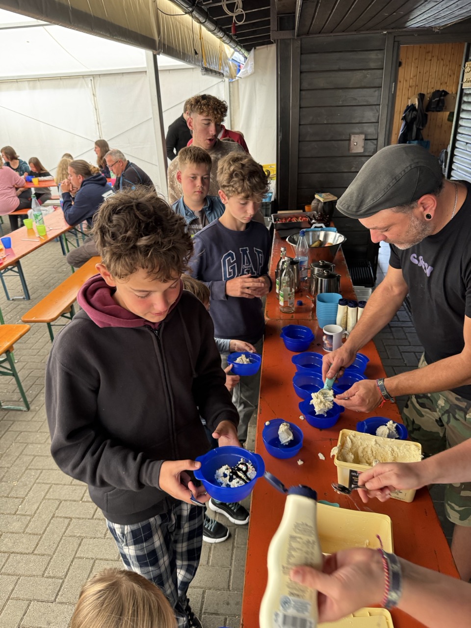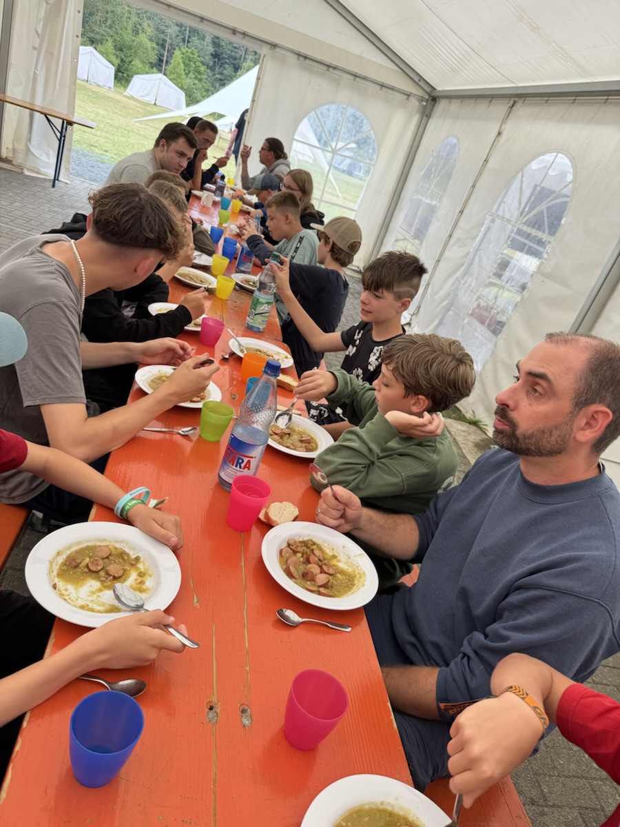 Wieder auf dem Platz gab es erst das Mittagessen (sehr leckere Käsespätzle und Eis zum Nachtisch) und anschließend haben wir mit allen zusammen ein Gruppenbild gemacht.