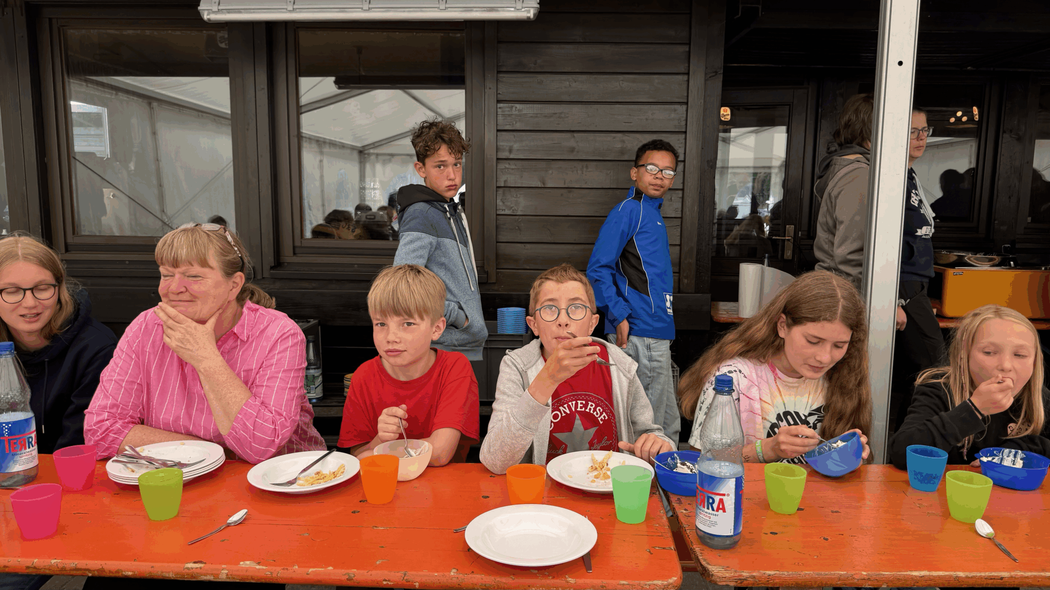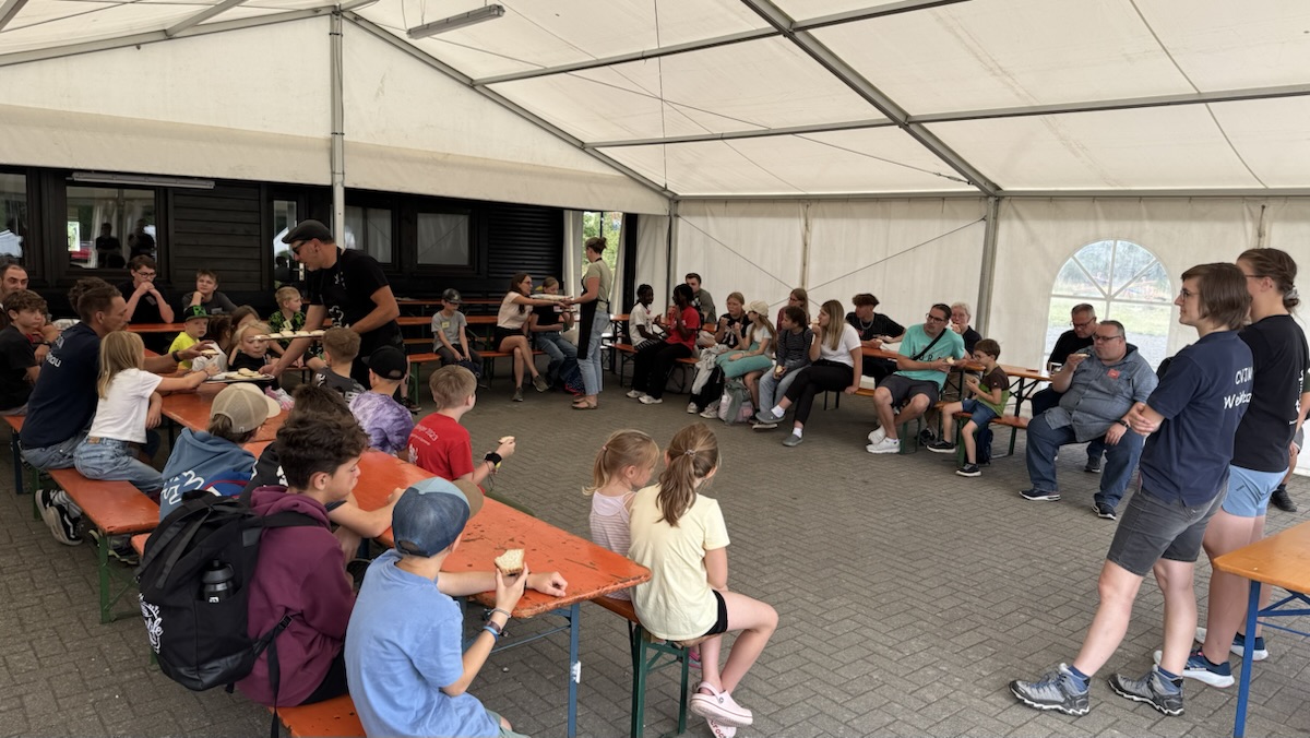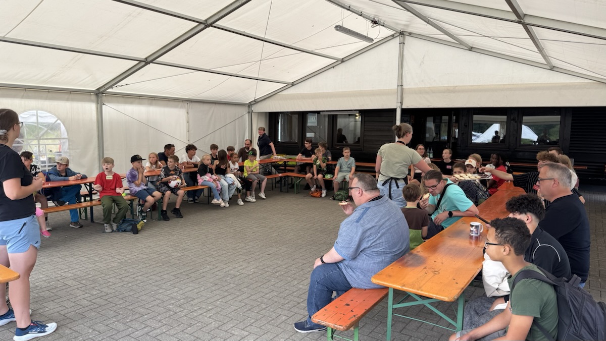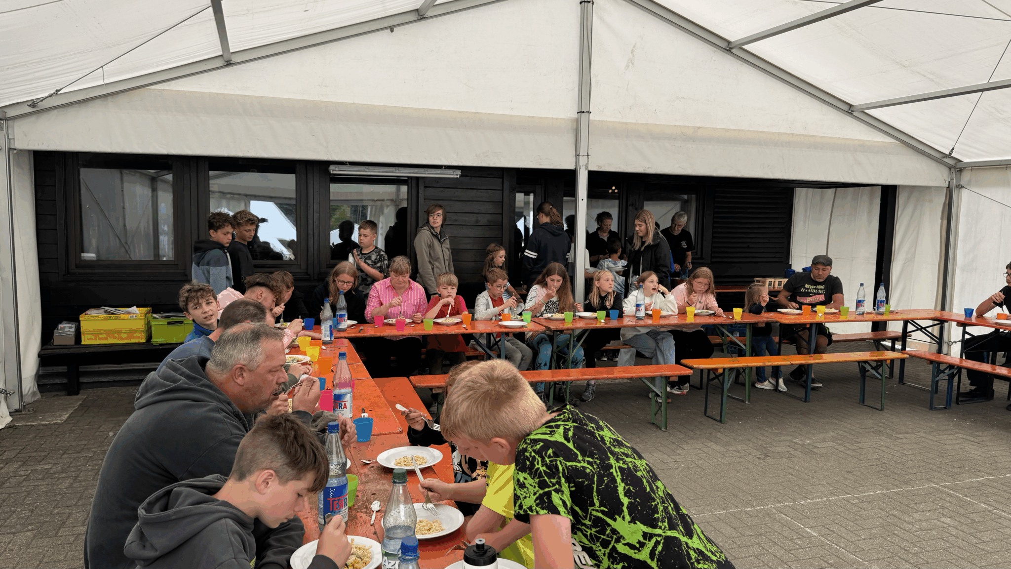Wieder auf dem Platz gab es erst das Mittagessen (sehr leckere Käsespätzle und Eis zum Nachtisch) und anschließend haben wir mit allen zusammen ein Gruppenbild gemacht.