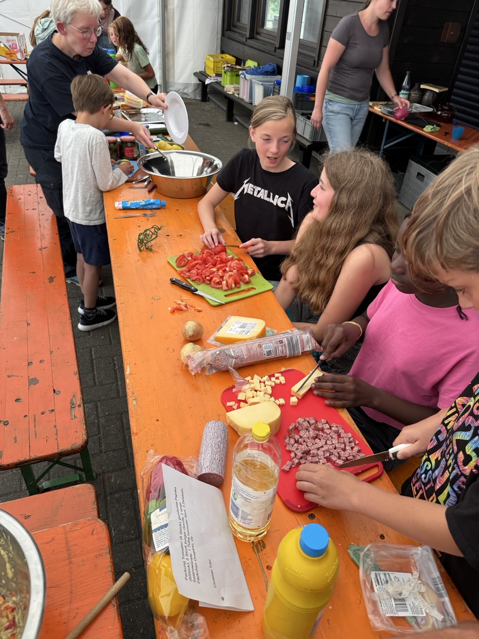 Weiter ging es mit gutem Essen. Diesmal haben die Kinder aber geholfen. Es wurden viele verschiedene Gerichte gemeinsam zubereitet und gekocht. Ergebnis: Ein tolles gemeinsames Essen.
