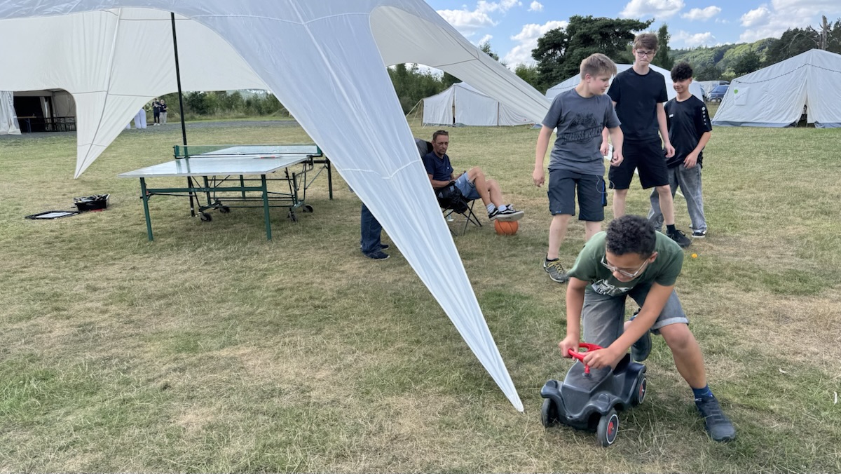 Bis zum Mittagessen wurde bei bestem Wetter der Platz erkundet. Fußball und Tischtennis waren direkt sehr beliebt.