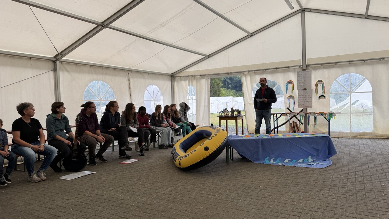 Nach dem Frühstück haben wir dann unseren Abschlussgottesdienst gemacht, in dem alle Gruppen noch einmal von der Woche erzählt haben.